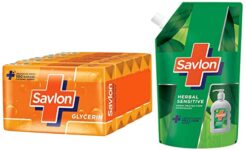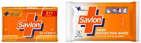 Savlon Germ Protection Wipes 10 Nos Pack & Savlon Glycerine Soap, 125G (Buy 3 Get 1 Free)