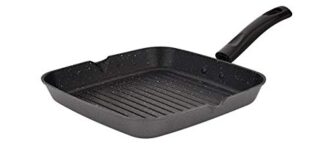 Attro Non-Stick Aluminium Gas Compatible Grill Pan, 24 Cm, Spatter Finish, Marble Grey
